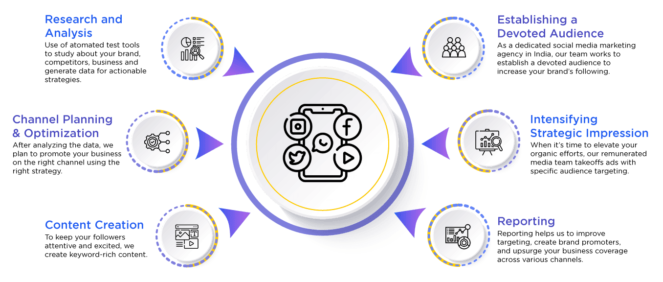 Our Social Media Marketing Strategy is all about making your brand shine online! Here's what we do to help you connect with your audience and achieve your goals: